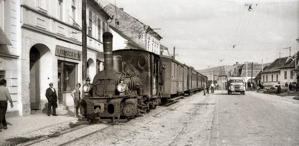 Loco & train in Agnita Main Street (Trevor Rowe – 1966)